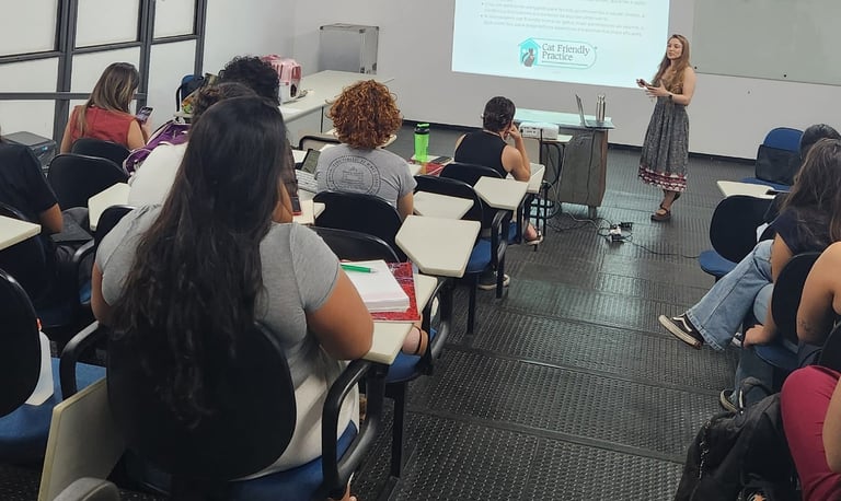 "O programa Cat Friendly Practice, desenvolvido pela Associação Americana de Medicina Felina (AAFP), busca melhorar o atendimento veterinário de gatos, considerando as peculiaridades físicas e comportamentais da espécie. O projeto enfatiza técnicas de manejo que visam reduzir o estresse antes, durante e após as consultas. O objetivo é criar um ambiente amigável para felinos, promovendo a saúde destes, a confiança dos tutores e o sucesso da equipe veterinária. Uma abordagem cat friendly não apenas melhora o bem-estar dos gatos, mas também contribui para diagnósticos mais precisos e tratamentos mais eficazes, resultando em uma expectativa de vida mais longa para esses animais".