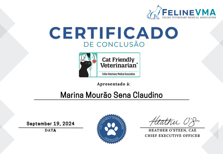 Tenho profundo respeito pela ciência e, por isso, baseio minhas condutas nos Guidelines de medicina felina, bem como nas pesquisas mais atualizadas da área. Essa busca constante por respaldo científico me permite oferecer um atendimento fundamentado nas mais recentes evidências disponíveis, assegurando a qualidade dos cuidados prestados.